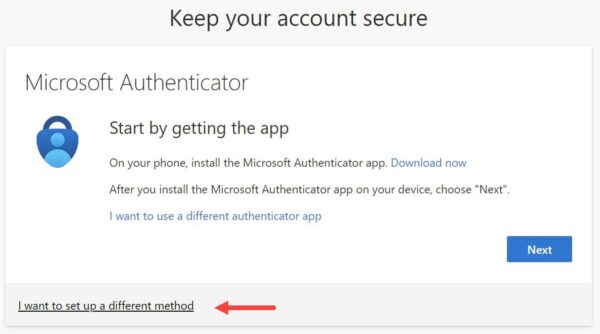 - Select “I want to set up a different method”.